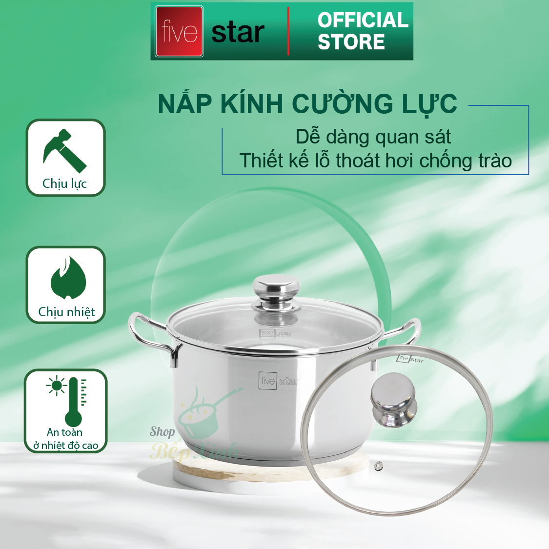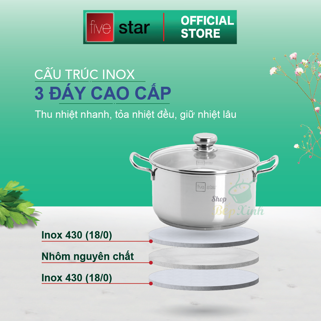 ✨Bộ nồi inox và xửng hấp inox 430 cao cấp Fivestar Standard 4 món nắp kính tặng 2 muỗng canh