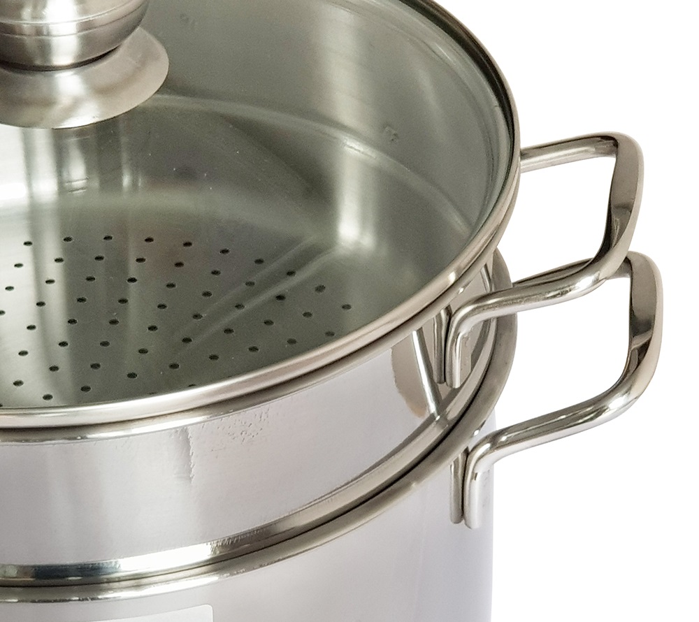Bộ sản phẩm gồm một nồi và một xửng có thể sử dụng độc lập nồi hoặc kết hợp nồi và xửng cho nhiều mục đích nấu nướng tại gia đình. Nồi dùng để luộc gà, nấu canh, nấu phở hoặc nấu lẩu cho nhiều người. Khi kết hợp với xửng hấp, bạn có thể hấp xôi, bánh bao hoặc các loại thực phẩm như thịt cá, rau củ rất tiện lợi.