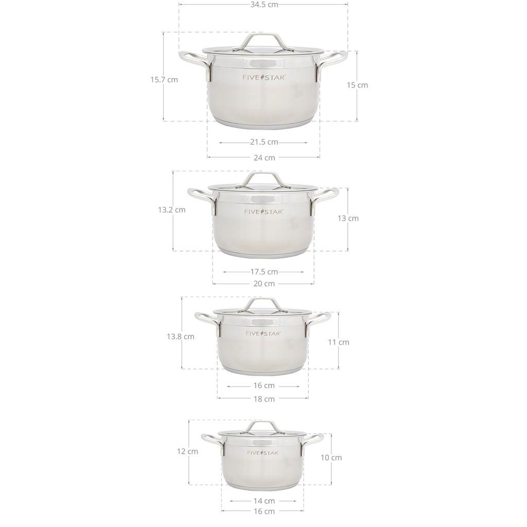 Bộ nồi FiveStar Plus FS08CG-304 inox 304 3 đáy bếp từ 4 chiếc nắp kính
