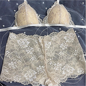 Bộ đồ lót ren bralette nâu không gọng không mút