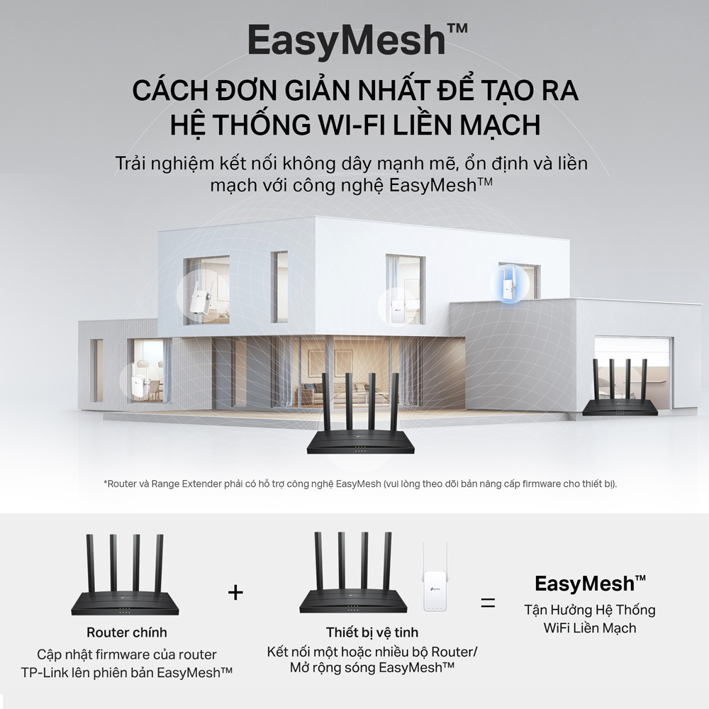 Router 3200Mbps Wi-Fi 6 Dual-band Gigabit Mesh: - Băng thông lớn; CPU lõi kép 4 luồng, hỗ trợ NAT - Truy cập đồng thời 48 người dùng (đề xuất) truy cập Wifi hai dải băng