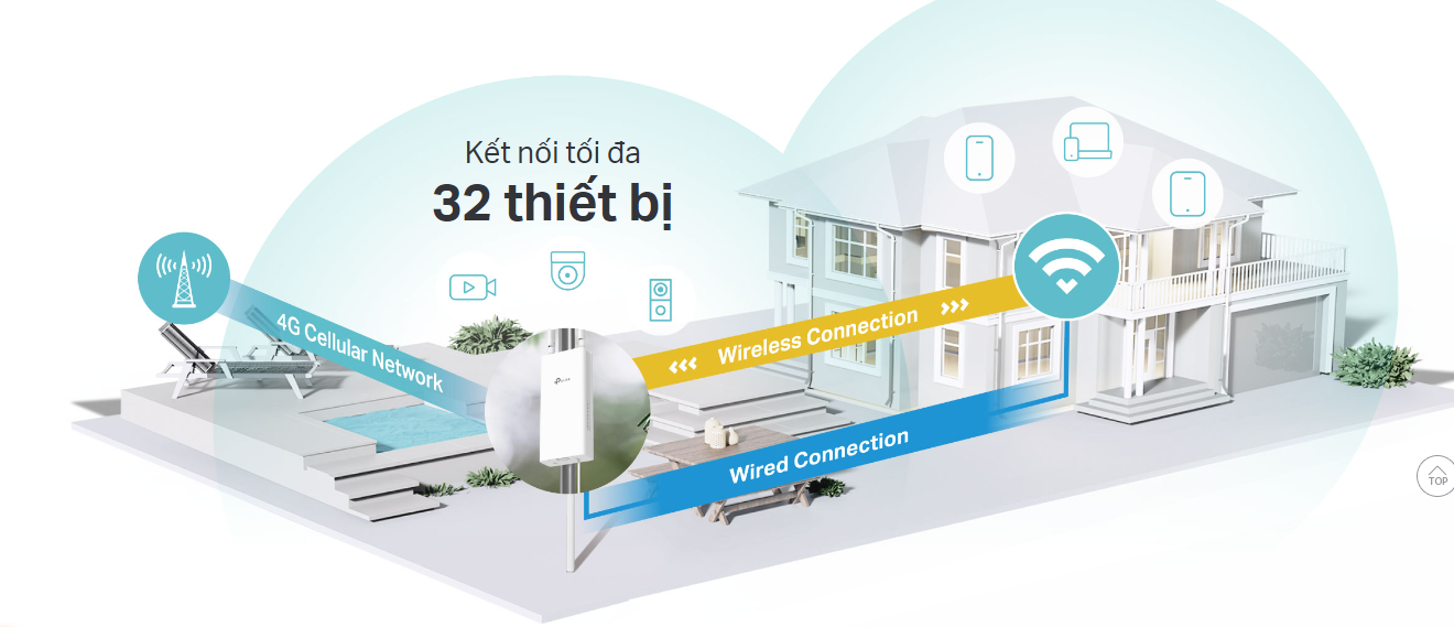 Bộ Phát Wi-Fi Ngoài Trời 4G Tốc Độ 300 Mbps - 4G LTE và Wi-Fi tốc độ cao: Hỗ trợ LTE lên đến 150 Mbps và Wi-Fi 2.4 GHz lên đến 300 Mbps.* - Thiết