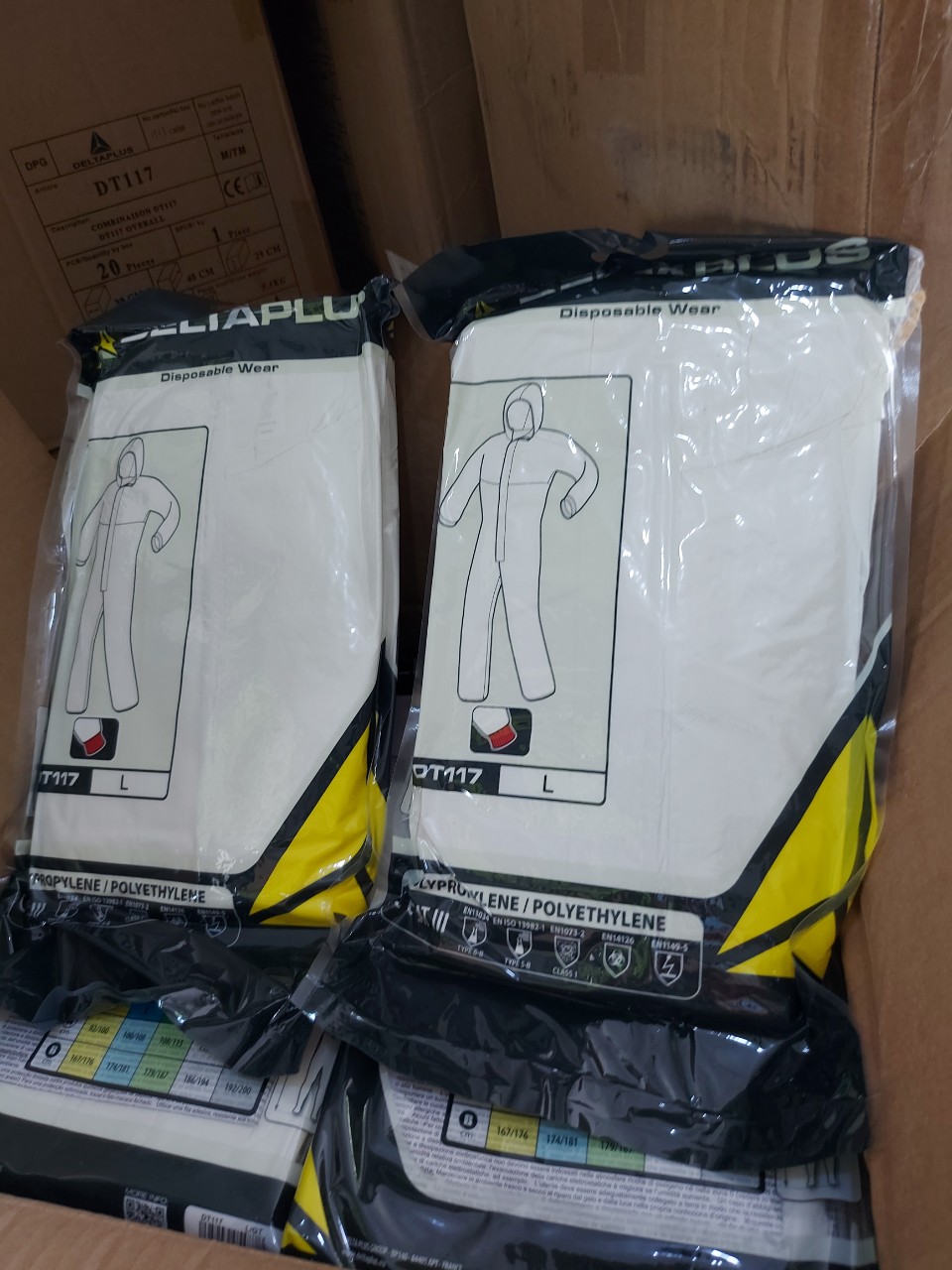 QUẦN ÁO CHỐNG HÓA CHẤT DELTAPLUS DT117 - Chất liệu: Vải không dệt DELTATEK 5000 (70% polypropylene + 30 % polyethylene) - Chống tất cả các loại bụi, vi khuẩn độc hại và hóa chất