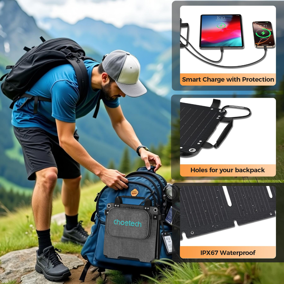 Mua tại TiktokGiới thiệu Bộ sạc năng lượng mặt trời di động Choetech SC005-V5 công suất 28w có thể gấp gọn (Hàng chính hãng)