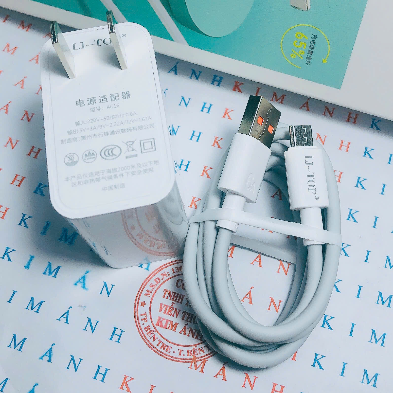 Bộ sạc nhanh 66W LI-TOP AC16 chân Micro, chứng nhận 3C tiêu chuẩn quốc gia, dùng thử 30 ngày, bảo hành 12 tháng Sản phẩm Li-Top cho Kim Ánh nhập trực tiếp về, trên thân và hộp có khắc dấu chứng nhận 3C tiêu chuẩn quốc gia, qua kiểm định nghiêm ngặt an toàn thiết bị điện , shop sẽ gửi kèm giấy chứng nhận theo đơn hàng đến cho khách Công suất 66W - chân cắm Micro Trên dây khắc logo thương hiệu Li-Top, 6A Củ nặng, đầm, chắc tay, hộp đựng đẹp, ngoại quan rất đẹp, anh chị em cửa hàng nhập về bán khách tốt