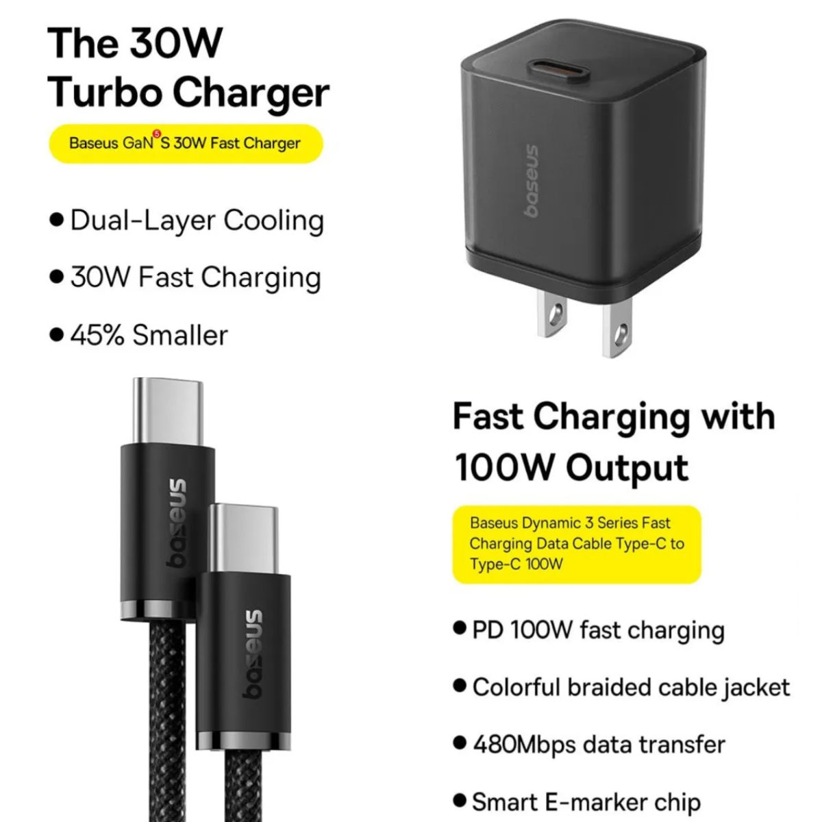 Giới thiệu sản phẩm Bộ Sạc Nhanh 30W Baseus GaN5S 1C (Kèm Cáp C to C 100W Dynamic 3 Series)