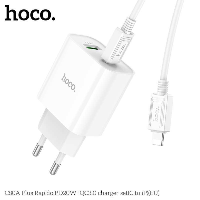 ✨Bộ Sạc Nhanh Dành Cho Hoco. C80A Plus PD20W + QC3.0 Type-C To IP Dây Dài 1m Hàng Chính Hãng