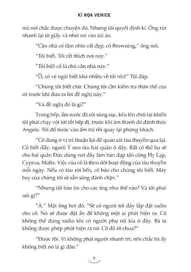 Đây có thể coi là một tác phẩm văn học nước ngoài viết về tình yêu, sự mất mát, lòng dũng cảm, tình bạn, những bí mật và sự khám phá bản thân. Một cô gái như Lettie, ở nơi đất khách quê người, lại là một điệp viên, một người mẹ, một tù nhân chiến tranh và một người tị nạn. Cô dám bỏ lại tất cả, chấp nhận đóng lại cánh cửa quá khứ, để lại những gì cô ấy yêu ở Venice trở về quê hương, bắt đầu lại cuộc sống mới. Từ cuộc đời của người bà trẻ, Caroline nhận ra nhiều điều, cô có thể ngừng thương đau và chấp nhận kết thúc cuộc hôn nhân của mình, cô có thể nhìn mọi việc đã xảy ra ở một góc độ khác, cô ấy rất ngưỡng mộ bà trẻ Juliet – một người trung thành, ngay thẳng, đơn sơ, đứng đắn và rất mực đáng kính – và những di sản mà bà đã để lại.
