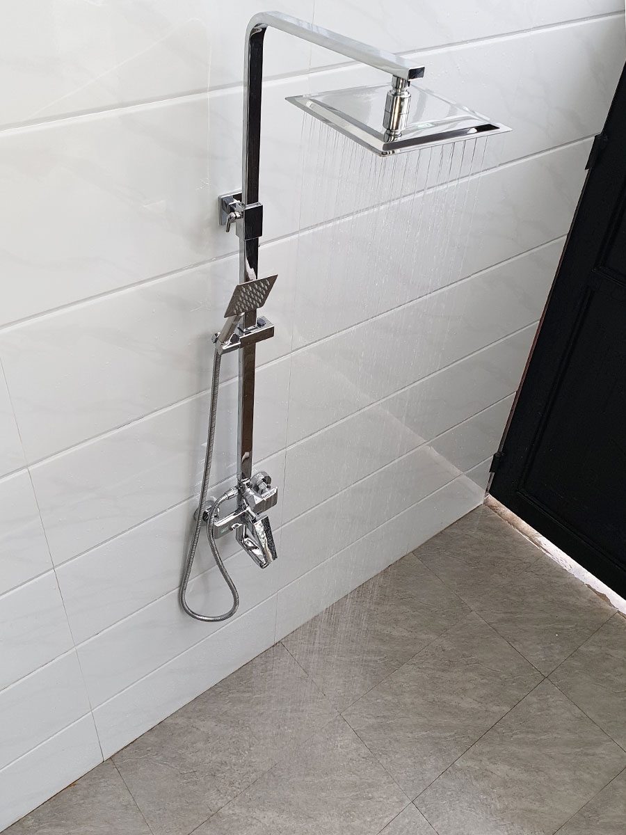 Đài sen và tay sen đi kèm được làm tự INOX SUS 304 an toàn cho sức khỏe người sử dụng. Mạ Chrome sáng bóng không hoen ố khi sử dụng
