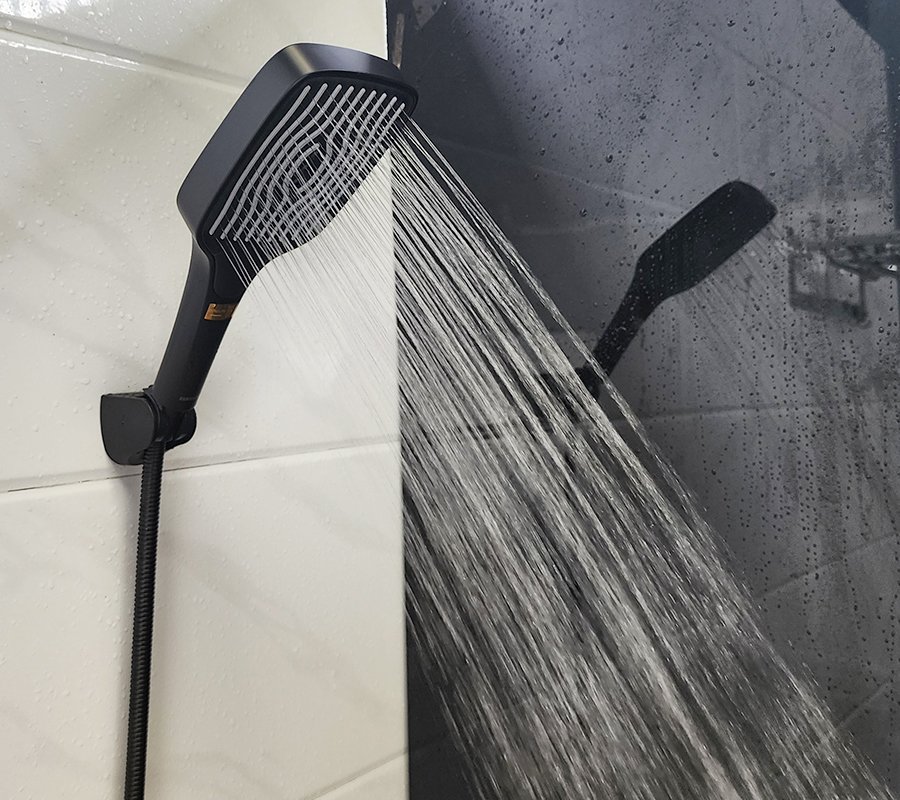 Chất liệu Nhưa ABS mạ màu đen, có thể điều chỉnh hướng dòng chảy của tay sen ( gật gù)