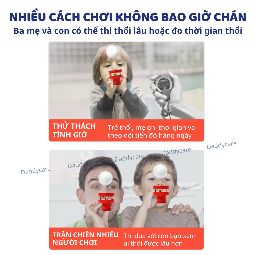 - TẬP LUYỆN THĂNG BẰNG MỌI LÚC, MỌI NƠI: Con có thể rèn luyện thăng bằng và tập trung ở bất cứ đâu. Đơn giản chỉ cần thổi đều vào ống để giữ quả bóng lơ lửng.