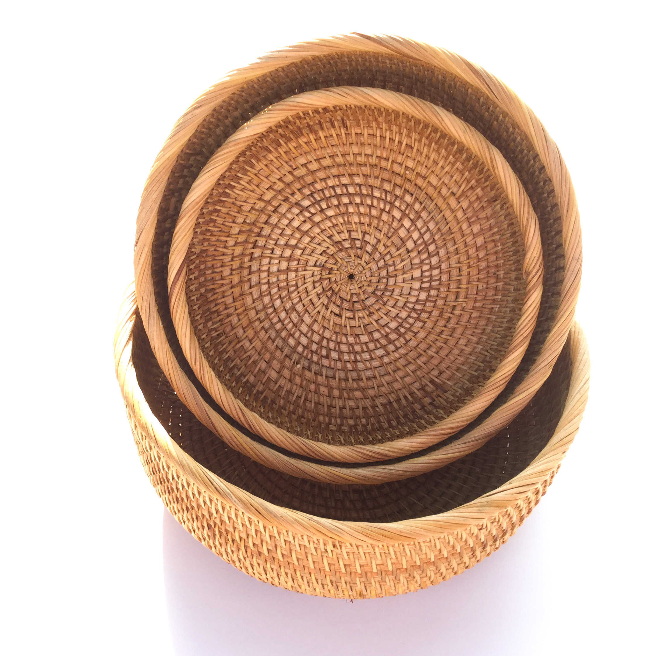 Bộ tô (bát) đựng đồ tiện dụng tròn có miệng hình tròn bằng mây đan được làm từ làng nghề thủ công
