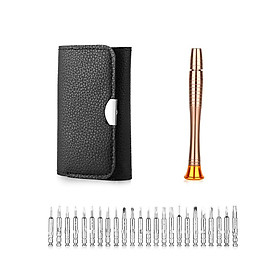 - Đóng gói sản phẩm bao gồm: 24 đầu vít, 1 tua vít và 1 bao da màu đen