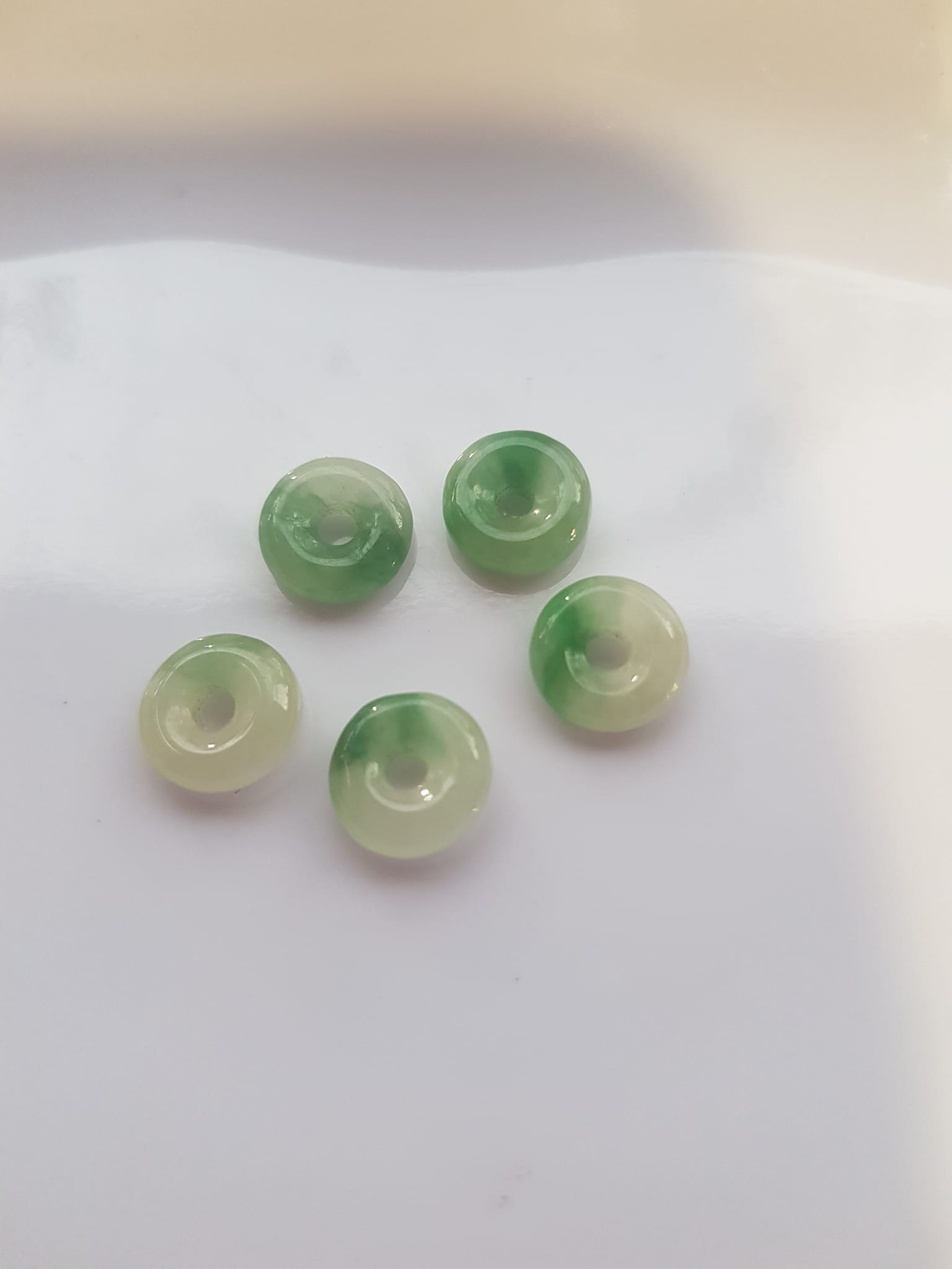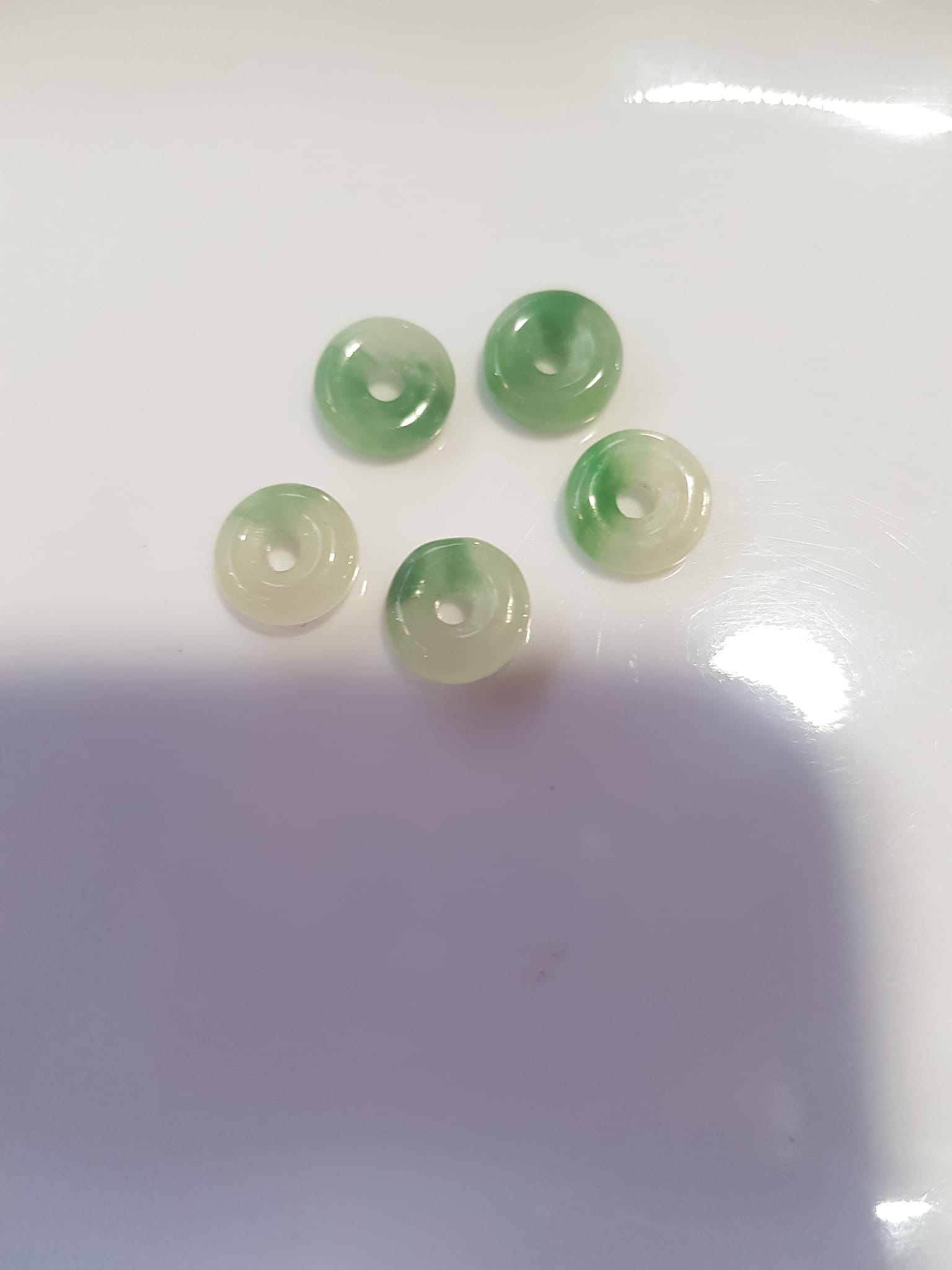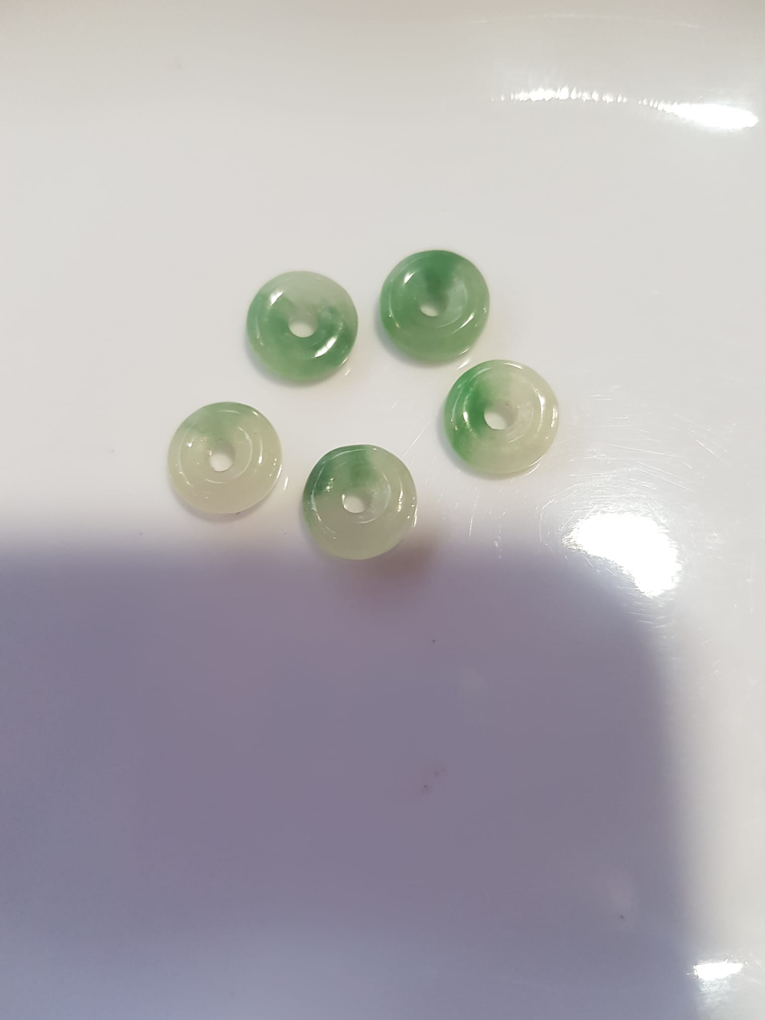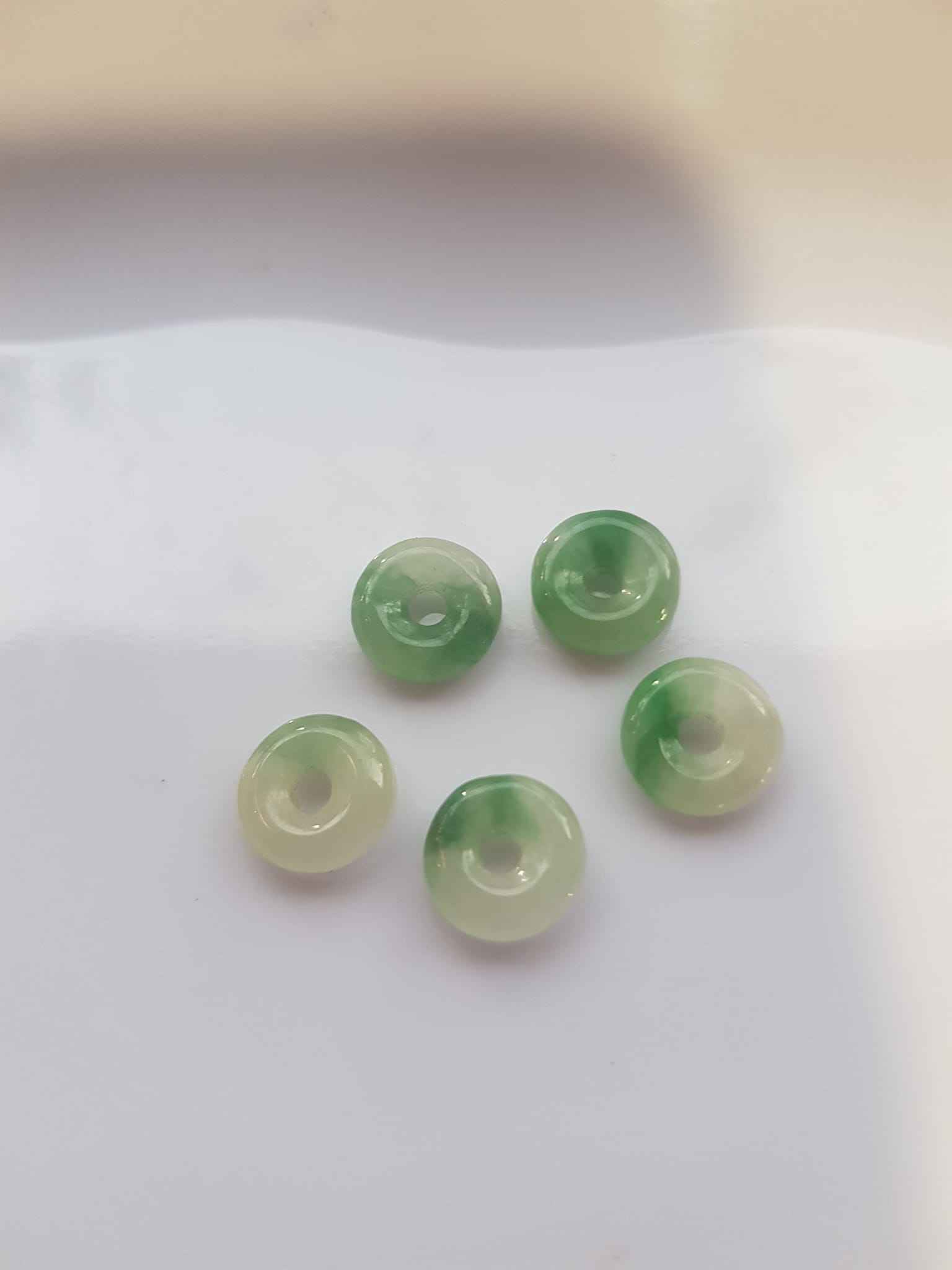 Bộ Trang sức Charm Vòng Tay gồm 5 đồng tiền may mắn tài lộcChất liệu đá cẩm thạch xanh Ngọc trắng tự nhiên bóng đẹpSize hạt đk 9mm x đk cao 3mm x lỗ giữa đồng tiền 2mm nữ phối vòng tay và làm mặt dâ...
