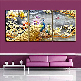 Bộ 3 tranh treo tường phòng khách, phong cách hiện đại tráng gương 5D may mắn đến nhà cho gia chủ ☘️
