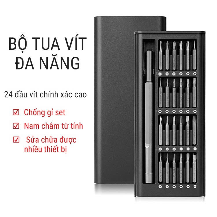 - Bộ Tua Vít 24 chi tiết mang lại cho bạn nhiều tiện lợi khi sửa chữa máy móc hay các thiết bị điện tử cỡ nhỏ trong gia đình. Bộ tua vít với đầu tua vít được làm từ chất liệu thép không gỉ, độ cứng cự...