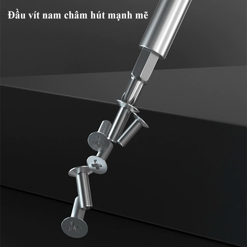 Đầu tuốc nơ vít đều được tích hợp nam châm => dễ dàng bắt ốc