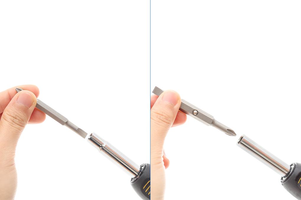 • 2 chiếc vít hai chiều : 6,35 65mm, PH1+ SL58,00 75mm, PH2 + SL6