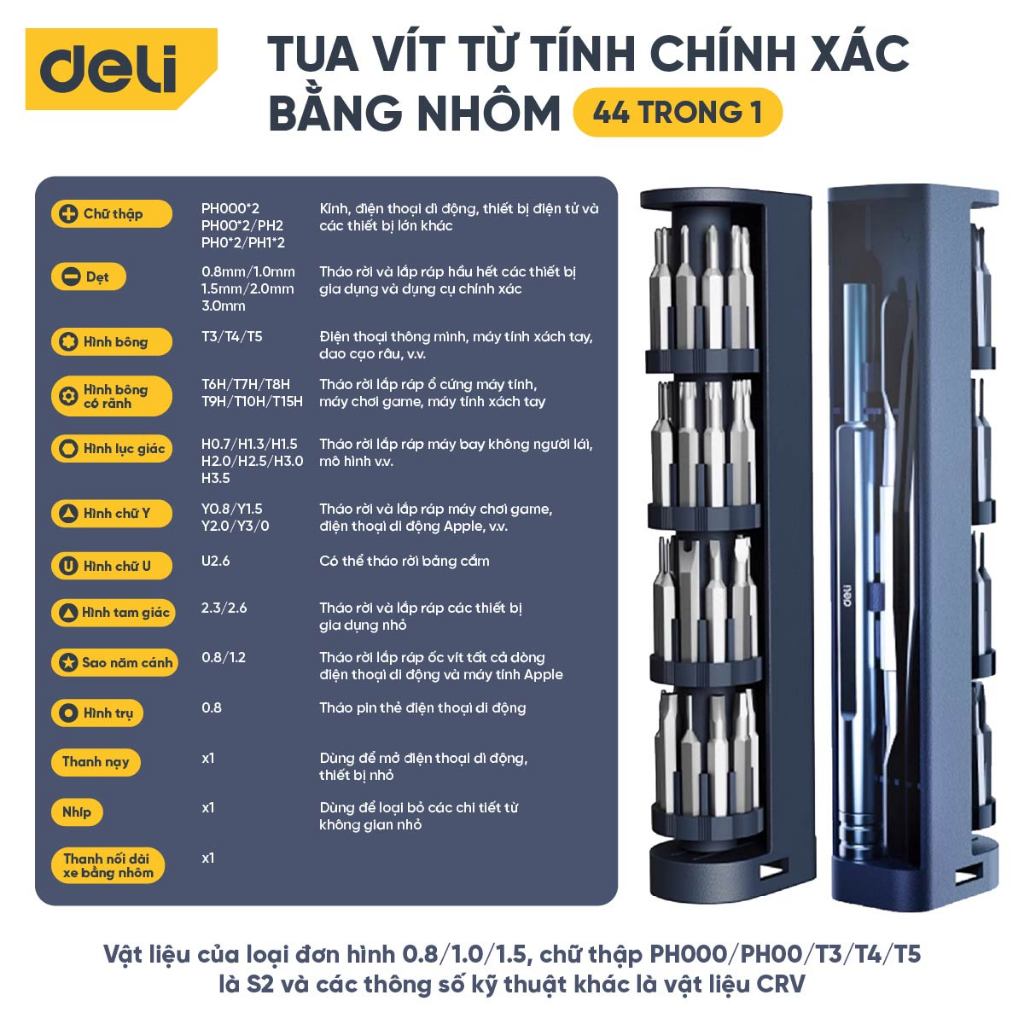✨Bộ tuốc nơ vít 44 in 1 Deli Cao Cấp Tua vít từ tính Sửa điện thoại, Máy tính, Ổ điện