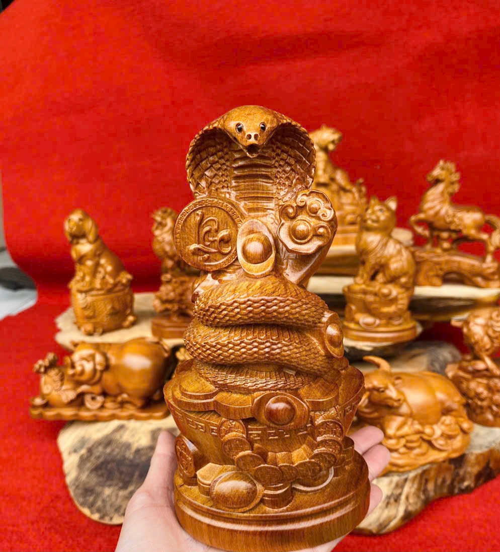 Mua tại Tiktok_ Bộ tượng 12 còn giáp phong thủy được làm bằng chất liệu gỗ bách xanh liền khối tự nhiên 100%