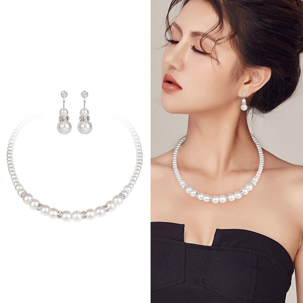 ✨Bộ vòng cổ và khuyên tai đính ngọc trai nhân tạo thời trang cho nữ