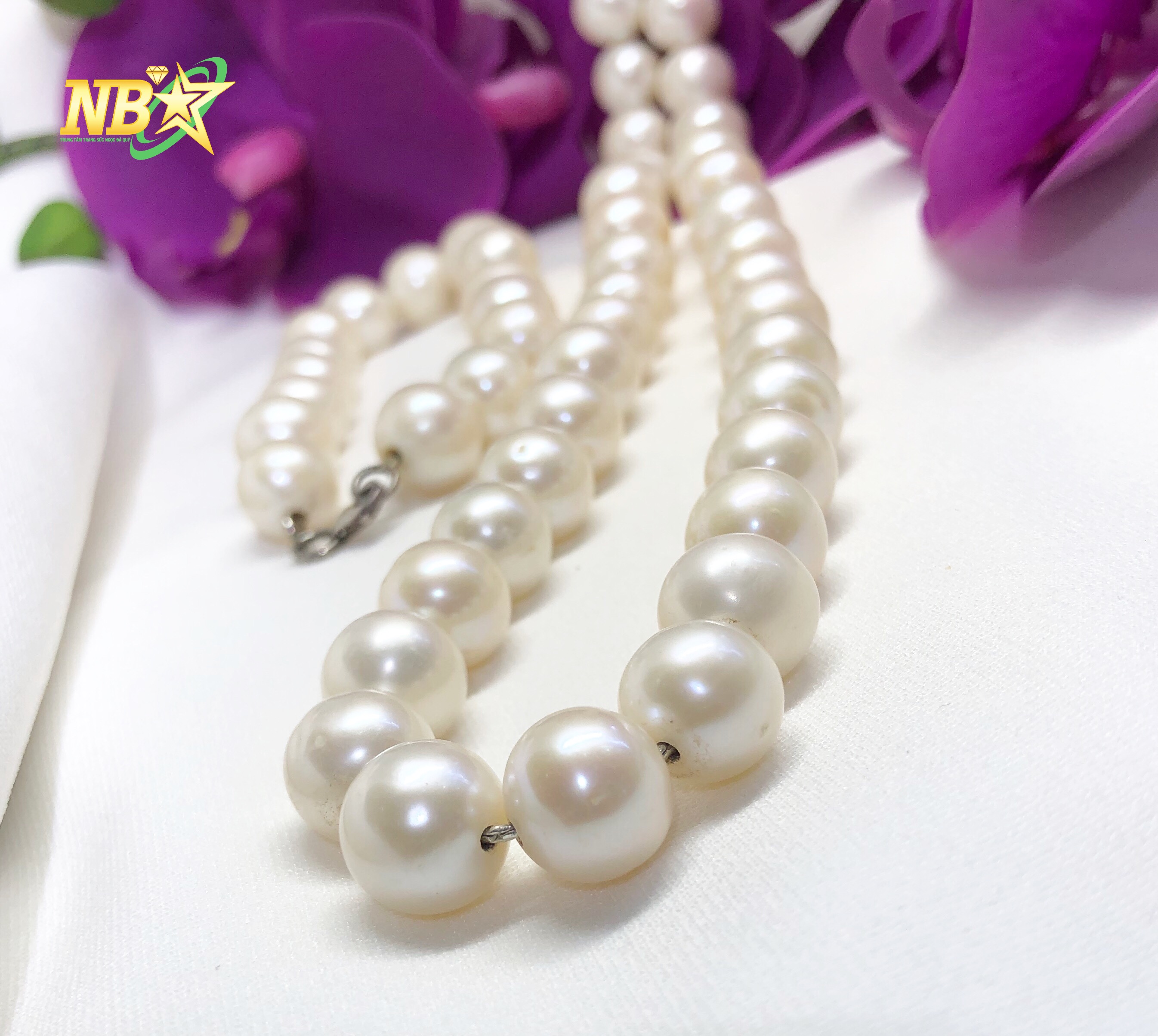 Chất liệu full bộ: Ngọc Trai nuôi cấy tự nhiên + đá cẩm thạch Kích thước hạt đường kính 7-8 li (Ngọc Tự Nhiên nên mỗi viên mang một vẻ, không được đồng nhất tuyệt