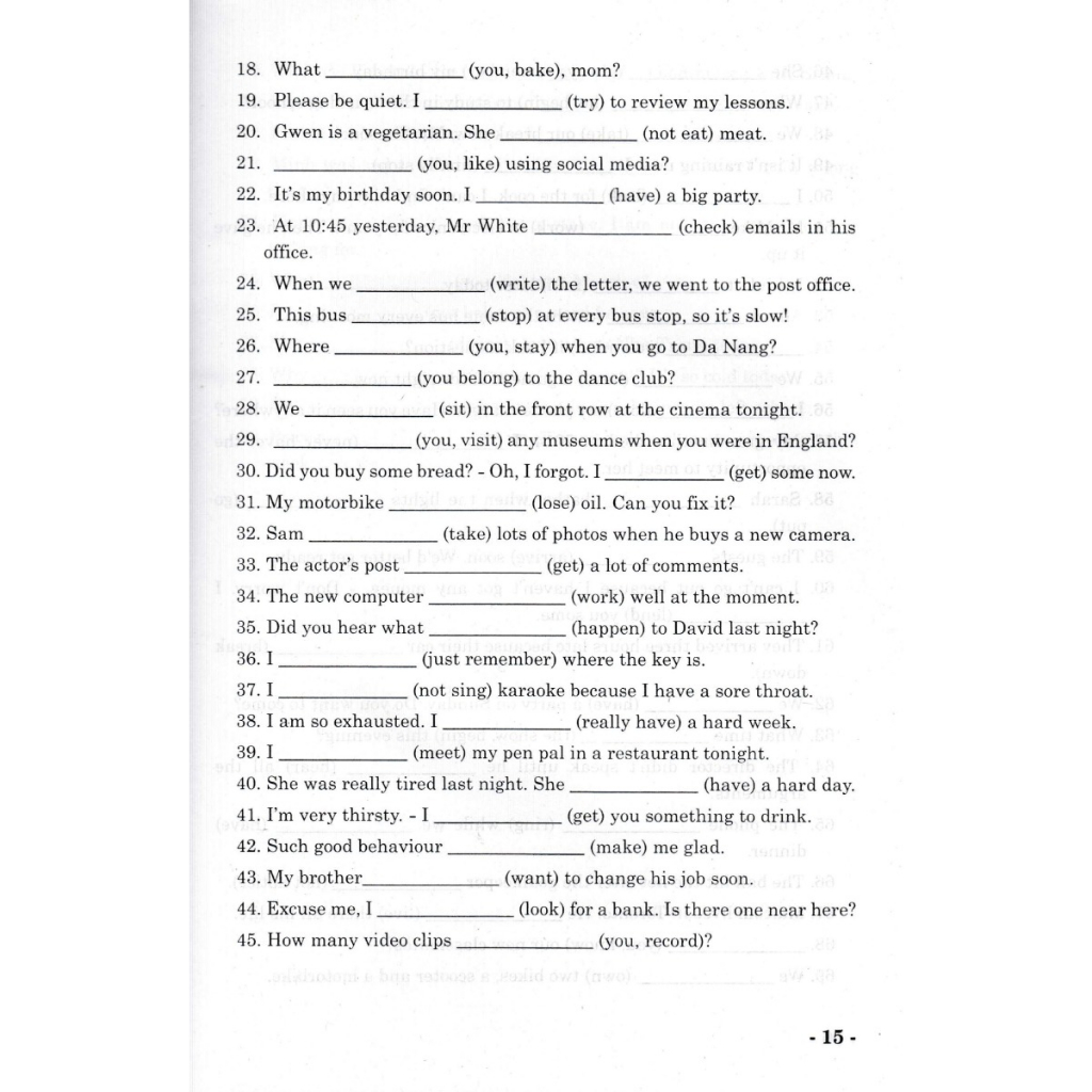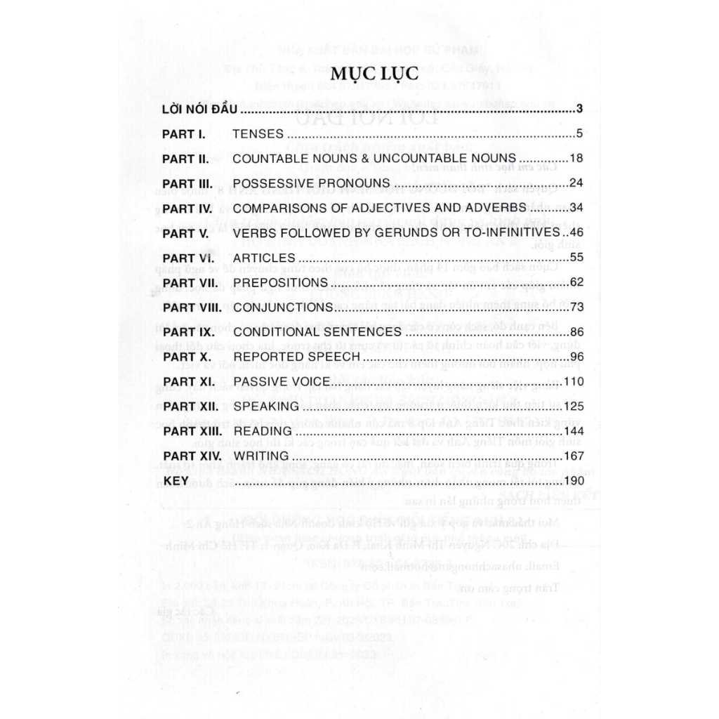 Cuốn sách bao gồm 14 phần, được bố cục theo từng chuyên đề về ngữ pháp nhằm giúp các em ôn tập và củng cố những kiến thức ngữ pháp đã học, đồng thời bổ sung thêm nhiều dạng bài tập nâng cao để các em luyện tập và trau dồi.