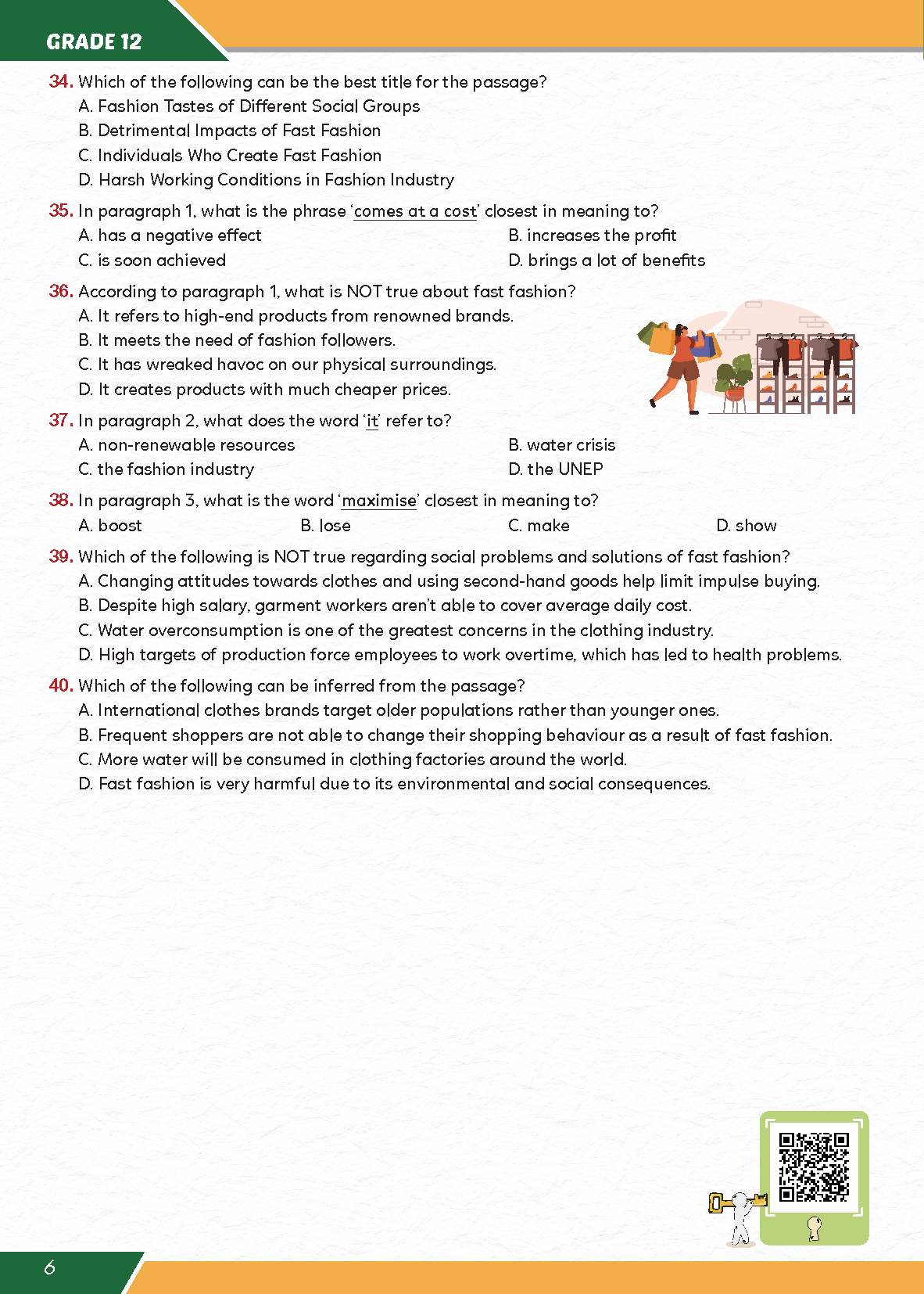 Mua tại TiktokBồi dưỡng Tiếng Anh 12 là quyển sách hữu ích dành cho học sinh lớp 12. Sách được biên soạn nhằm giúp học sinh ôn luyện kiến thức & kĩ năng tiếng Anh thông qua các bài tập trắc nghiệm, bám sát khung chương trình do Bộ Giáo Dục & Đào Tạo quy định, theo cấu trúc của đề thi tốt nghiệp trung học phổ thông. Kèm theo sách là các hợp phần có thể tải về máy tính hoặc sử dụng trực tuyến như đáp án, ứng dụng đa nền tảng & sách điện tử. Dùng mã code dưới lớp tráng bạc bìa 2 để kích hoạt là bài luyện tập tương tác.