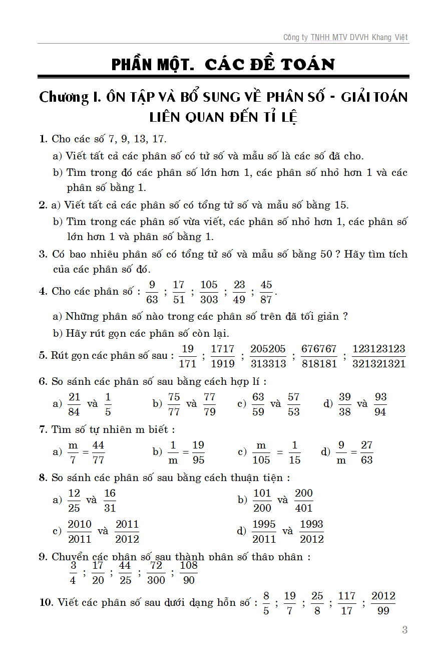 Phần I. Các bài toán.