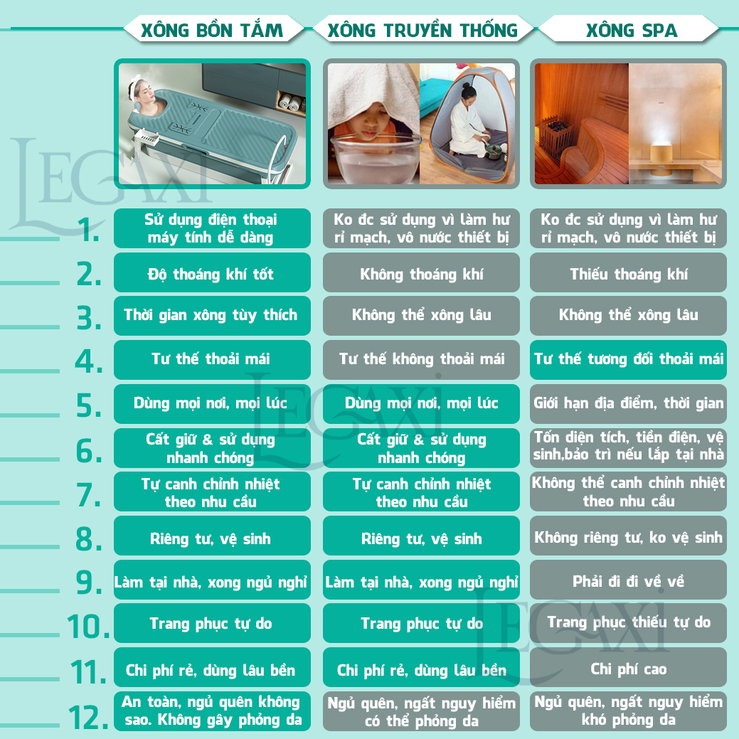Không bị thiếu dưỡng khí, bí bách như khi xông bằng lều, khăn, các phương pháp truyền thống