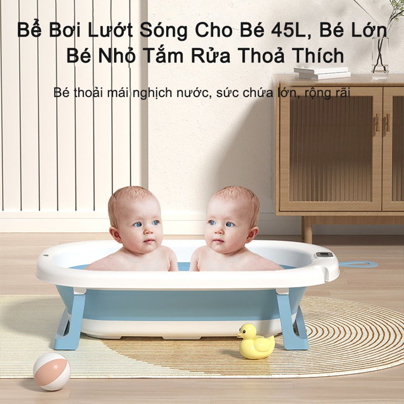 ✨Bồn Tắm, Chậu Tắm Cỡ Lớn Có Nhiệt Kế Gấp Gọn Tiện Dụng Cho Bé Kèm Phao Tắm Lớn Chính Hãng (màu ngẫu nhiên)