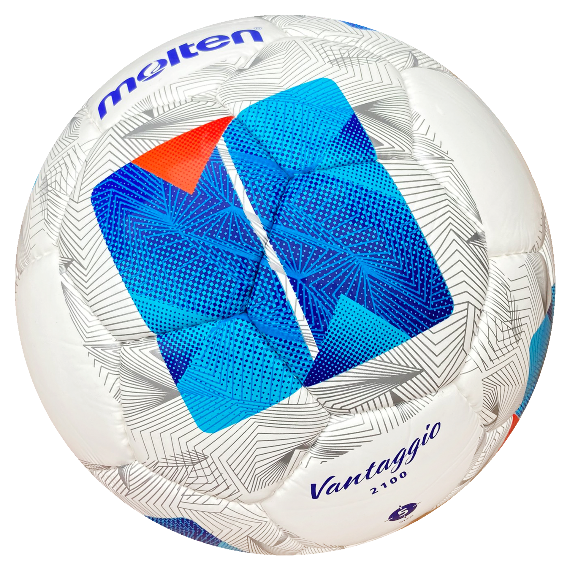 Sản phẩm có thiết kế đẹp mắt, màu sắc Trắng – Xanh – Cam cùng nhiều họa tiết sắc nét, tỉ mỉ của thiết kế Thế hệ Vantaggio thứ 5. Bóng tròn đều, họa tiết khỏe khoắn đem lại cho người sử dụng cảm giác hứng thú mỗi khi tập luyện, thi đấu. Bóng sử dụng cho tập luyện sân 7 - sân 11 phong trào hiệu quả.