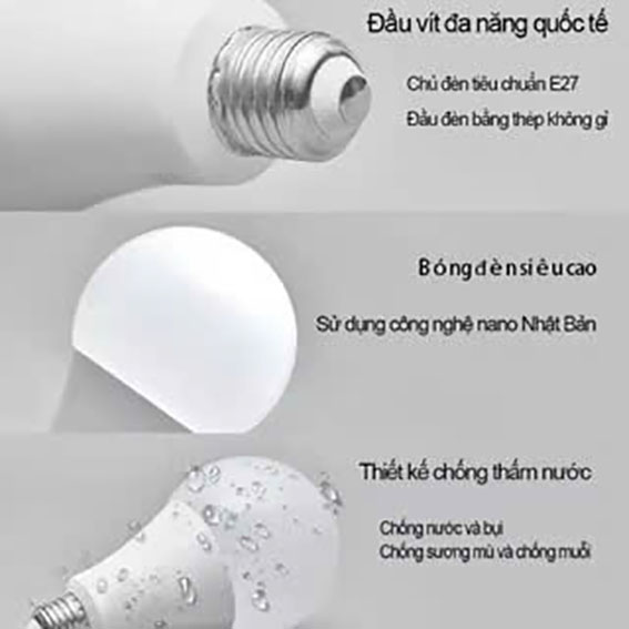 Bóng led bulb thường có tuổi thọ trung bình từ 30.000 giờ tới 50.000 giờ tuỳ vào điều kiện môi trường hoạt động của bóng đèn. Tính năng tiết kiệm điện: Với chíp led 2835 công nghệ 130lm/w-140lm/w siêu sáng Quang thông thực tế đạt 95lm/w cao hơn công nghệ cũ chỉ 70-85lm/w Tiết kiệm 90% điện năng thay thế 3U compact 9W – 14W Giúp giảm chi phí hóa đơn tiền điện