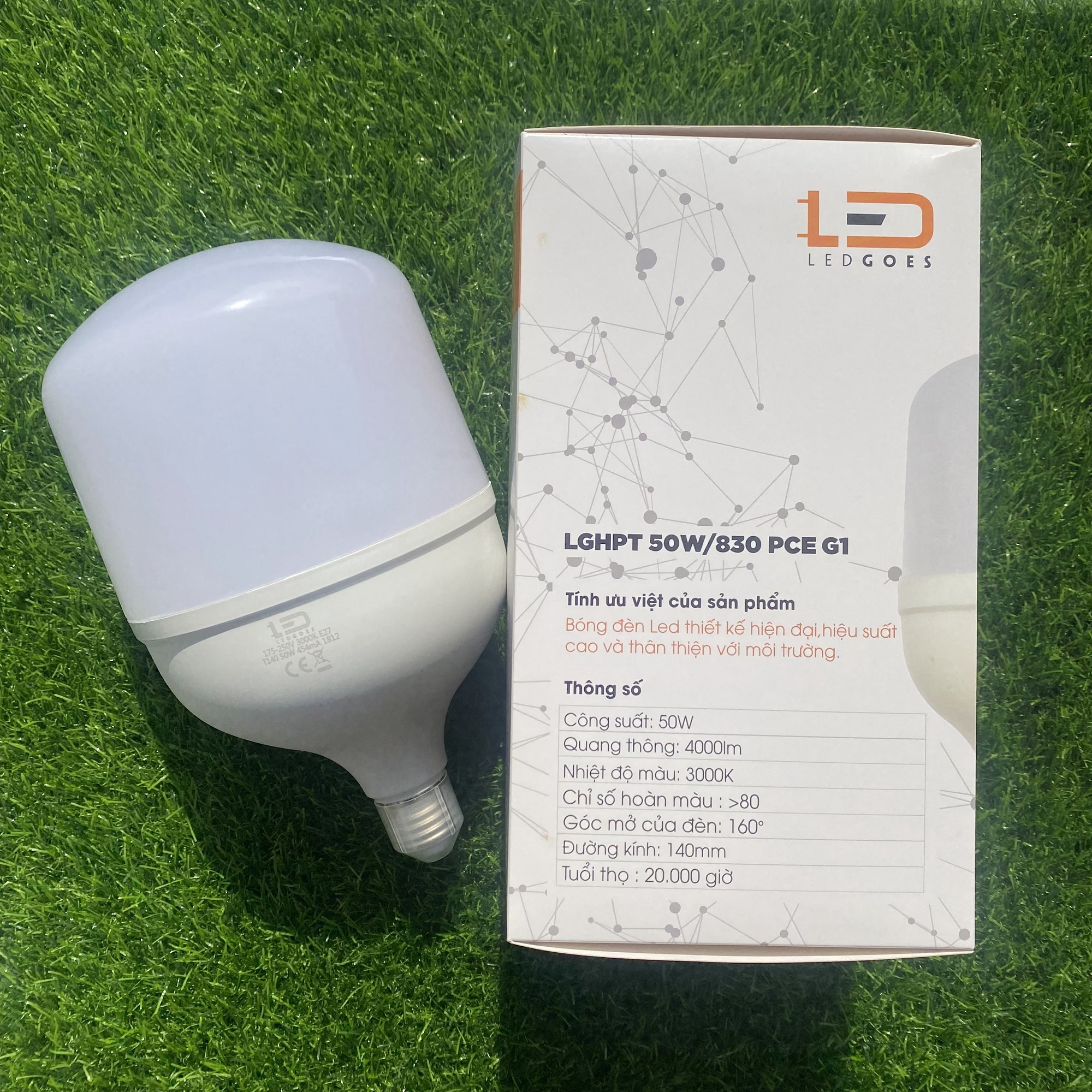 Bóng đèn LED BULB Trụ 50W Model: TR140N1/50W.H Đặc tính của đèn Đầu đèn E27 Nguồn điện danh định 220V/50Hz Góc chùm tia 180 độ Vật liệu Nhôm - Nhựa Thông số điện Công suất