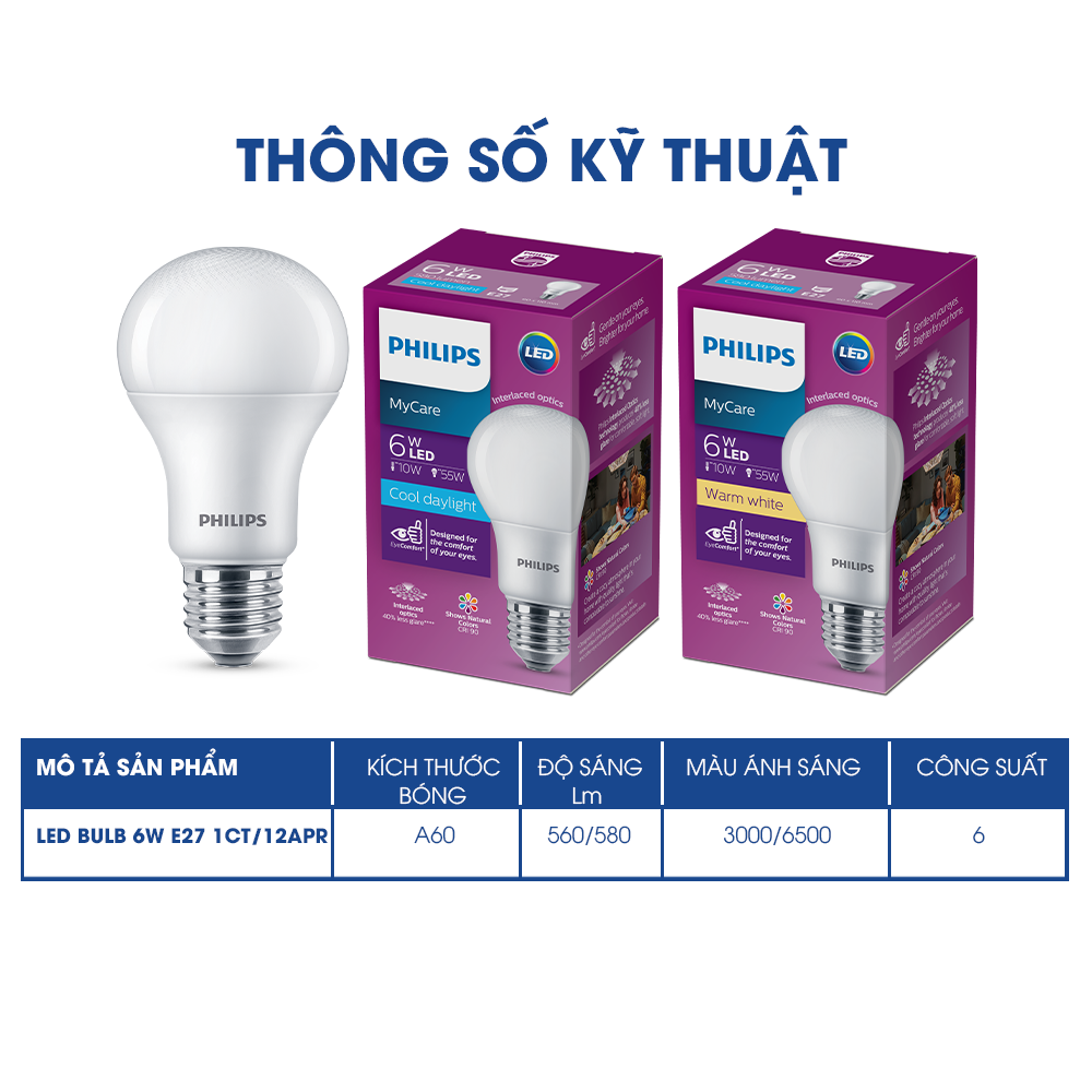 ✨Bóng đèn PHILIPS LEDBULB Mycare A60 -Công suất (4W,6W,8W,10W,12W) bảo vệ mắt