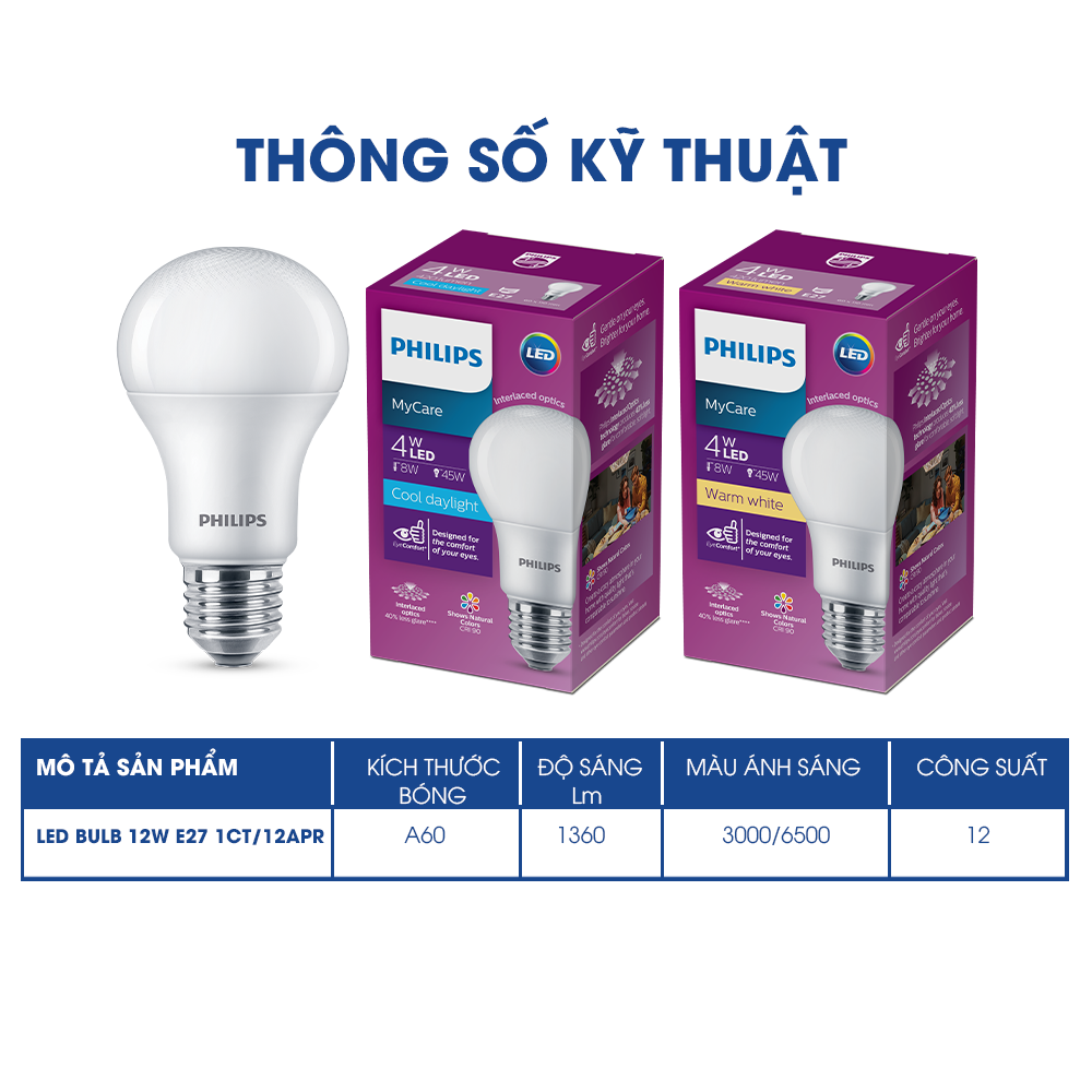 Mua tại TiktokBóng đèn LED Bulb MyCare Philips A60 Chăm sóc đôi mắt của bạn Ưu điểm nổi bật