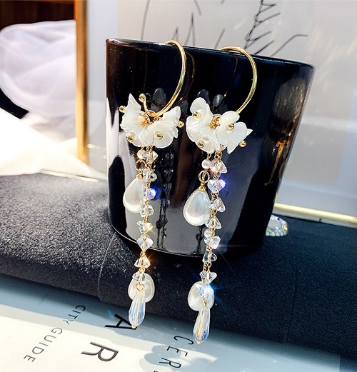 ✨Bông tai chuỗi ngọc trai pha lê sang trọng