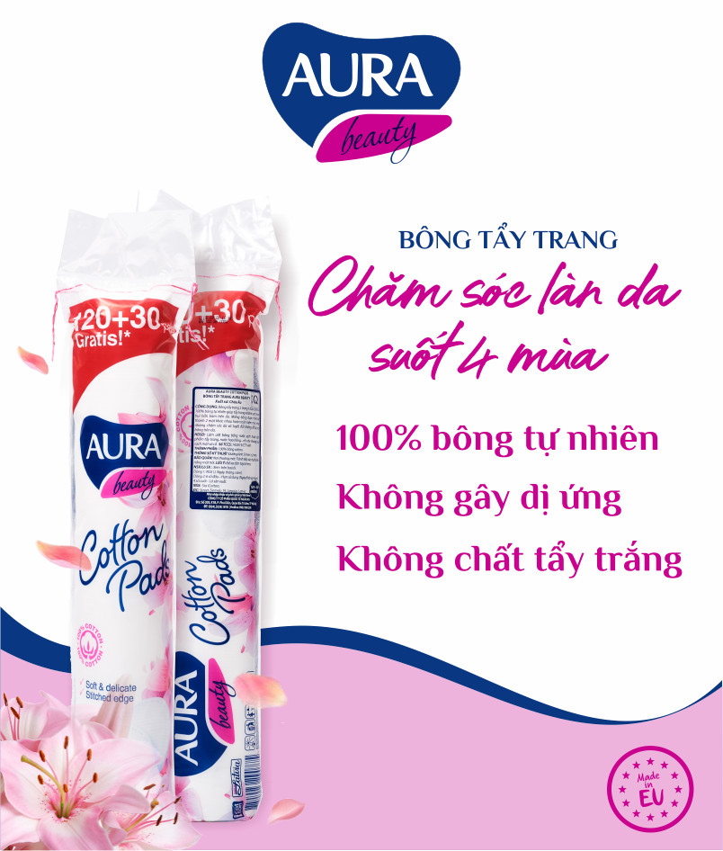 Mua tại Tiktok- Combo Bông Tẩy Trang Aura Beauty 150 Miếng 100% cotton nhập khẩu từ Châu Âu sản phẩm hộ trợ tẩy trang hoàn hảo.
