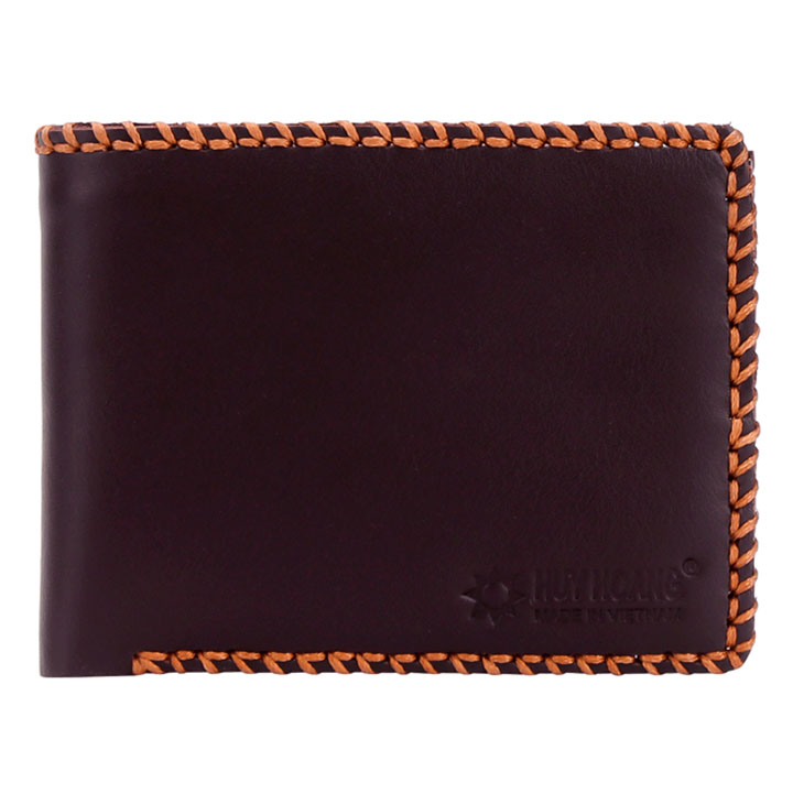 Ví/Bóp nam Huy Hoàng da bò viền chỉ màu nâu 2130