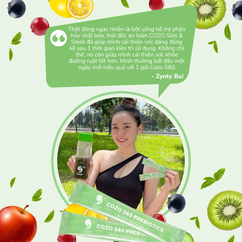 Bột Uống Hỗ Trợ Giảm Cân, Đốt Mỡ, Phân Hủy Chất Béo, Giảm Carbohydrate Cozo Slim & Sleek An Toàn Cho Dạ Dày - Hộp 15 Gói Giải quyết vấn đề đường ruột với Cozo