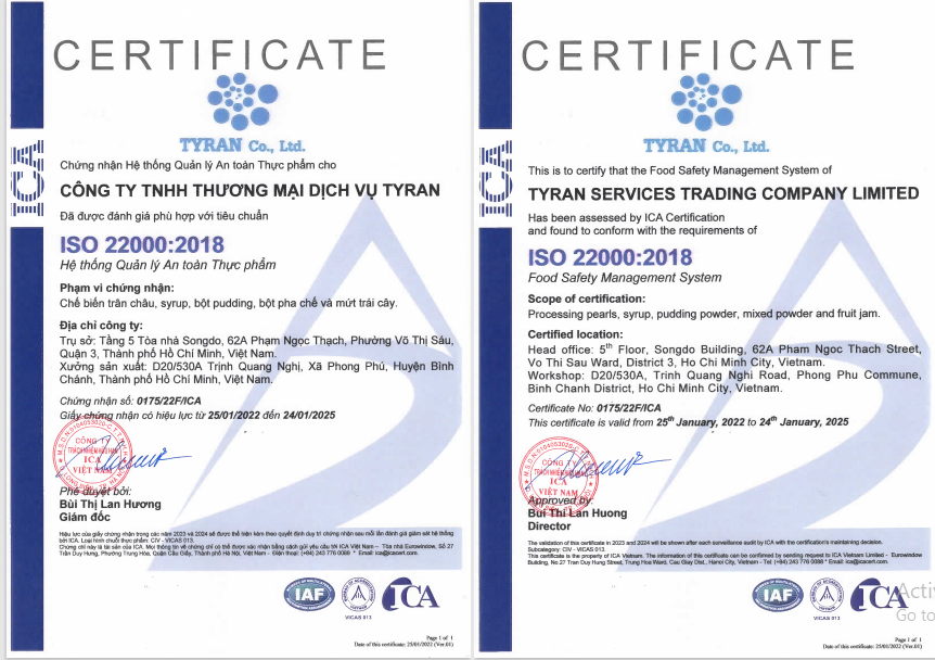 Mua tại TiktokChứng nhận: Sản xuất tại Việt Nam. 100% chính hãng. Chứng nhận tiêu chuẩn chất lượng quốc tế ISO 22000 : 2018. Mô tả: ƯU ĐIỂM: Trân châu dẻo dai thơm ngon. Độ hút đường