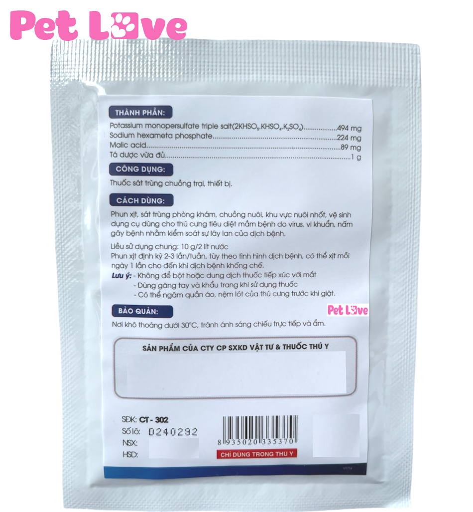 Mua tại Tiktok- Sát trùng phòng khám, chuồng nuôi, khu vực nuôi nhốt, vệ sinh dụng cụ dùng cho thú cưng.