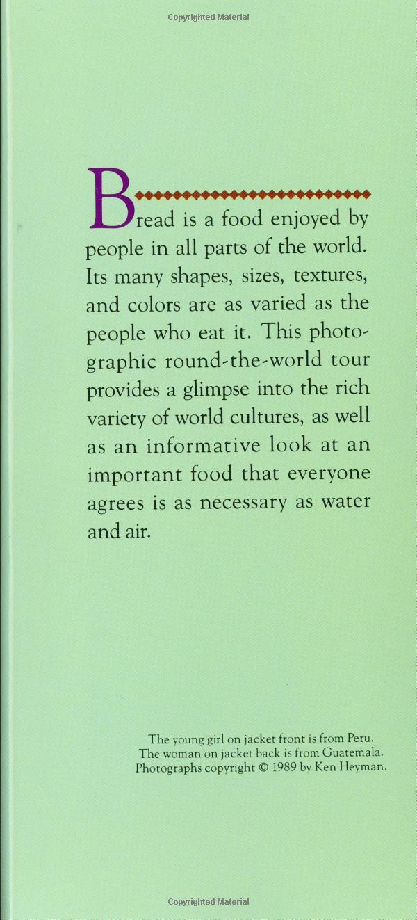 Bread is a food enjoyed by people in all parts of the world. Its many shapes, sizes, textures, and colors are as varied as the people who eat it. This photographic round-the-world tour provides a