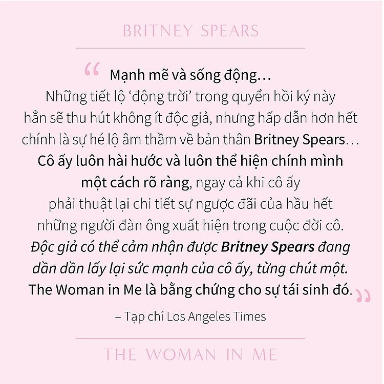Người đàn bà trong tôi hé mở cho độc giả thấy hành trình phi thường của Britney Spears, cùng với sức mạnh cốt lõi của cô ấy, một trong những nghệ sĩ vĩ đại nhất trong lịch sử nhạc pop.