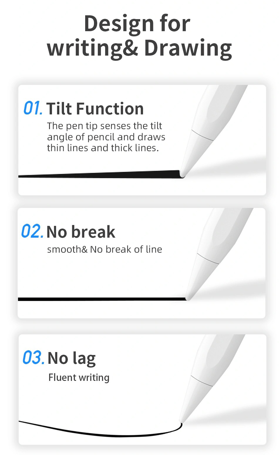 Được thiết kế cho các mẫu iPad 2018-2024 Bút cảm ứng cho iPad hỗ trợ cho các mẫu iPad series 2018-2024: iPad thế hệ thứ 6/7/8/9, iPad Air thế hệ thứ 3/4/5, iPad Pro 11/12,9