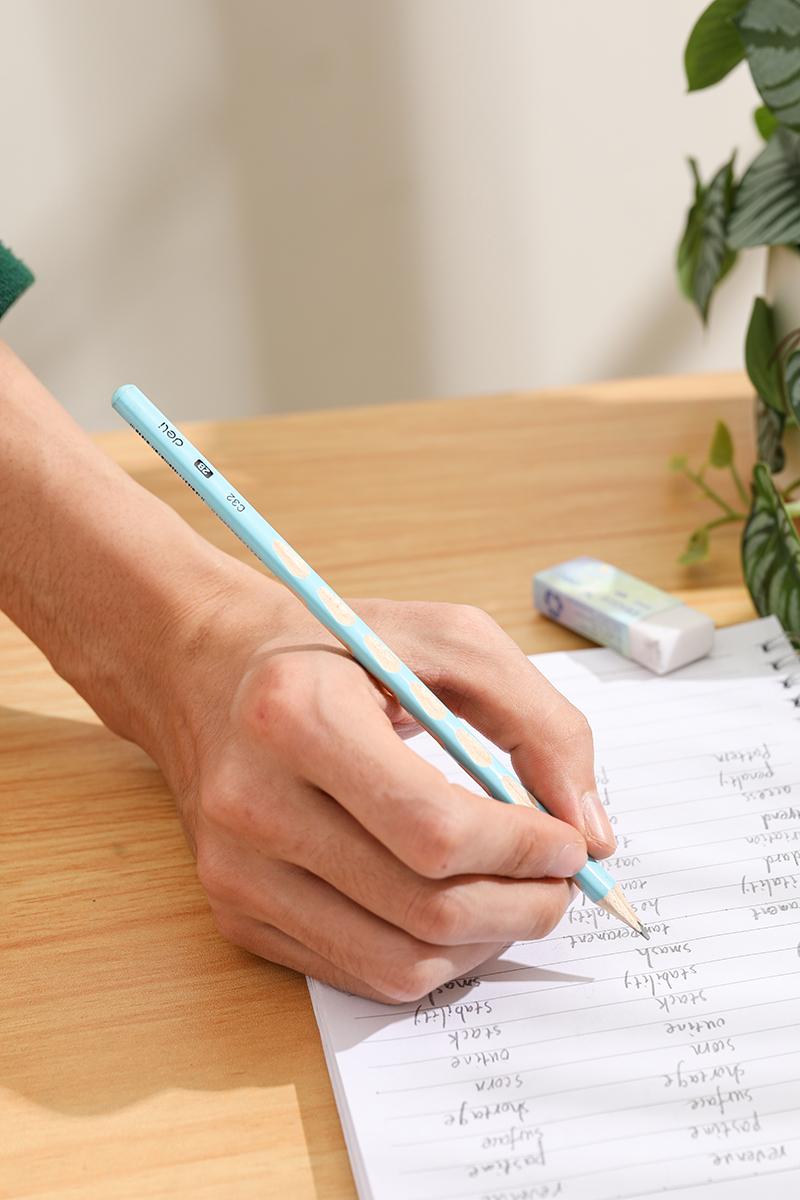 Thân bút chì được khoét lỗ giúp định vị ngón tay khi cầm bút.