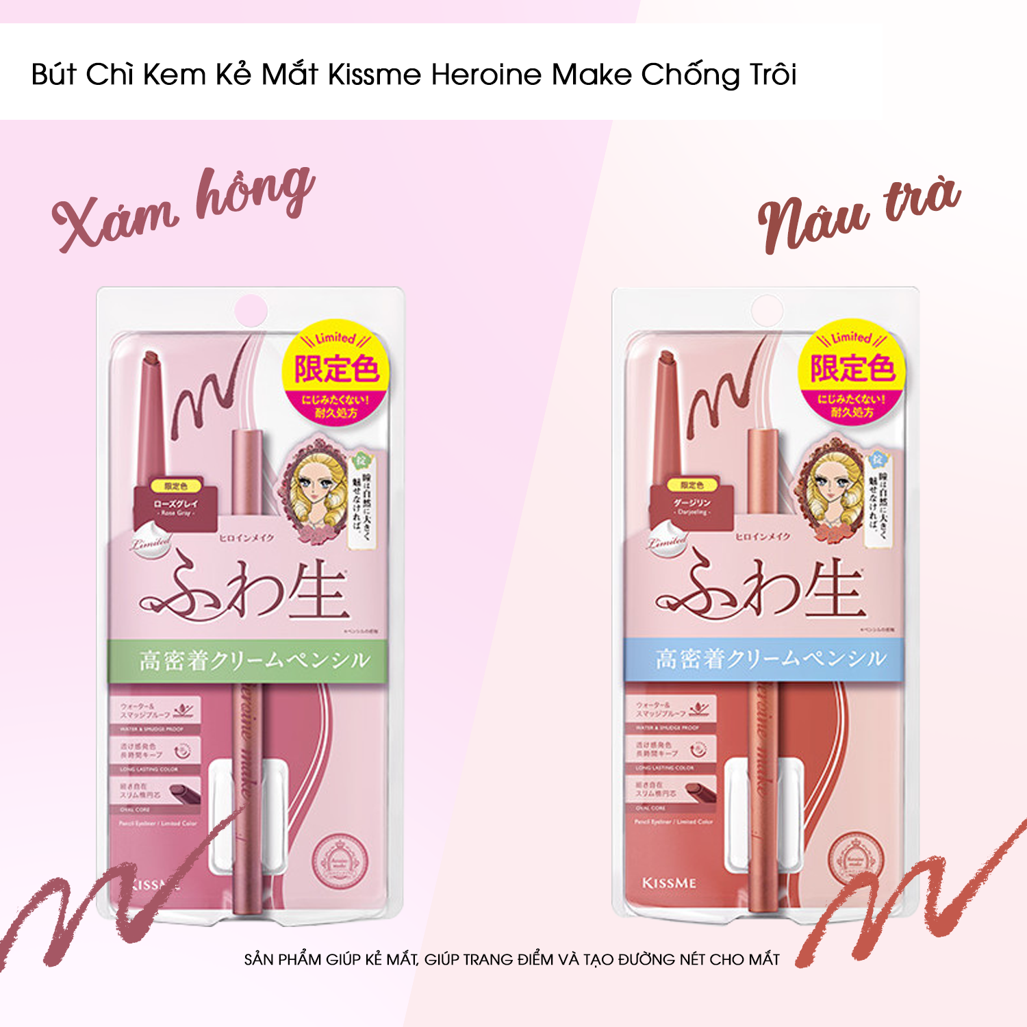 Bút Chì Kem Kẻ Mắt Kissme Heroine Make Chống Trôi - Màu Xám Hồng Thương hiệu: Kissme Xuất xứ: Nhật Bản Mã vạch: 4901433077729 HSD: 5 năm kể từ NSX - Nét kẻ mềm