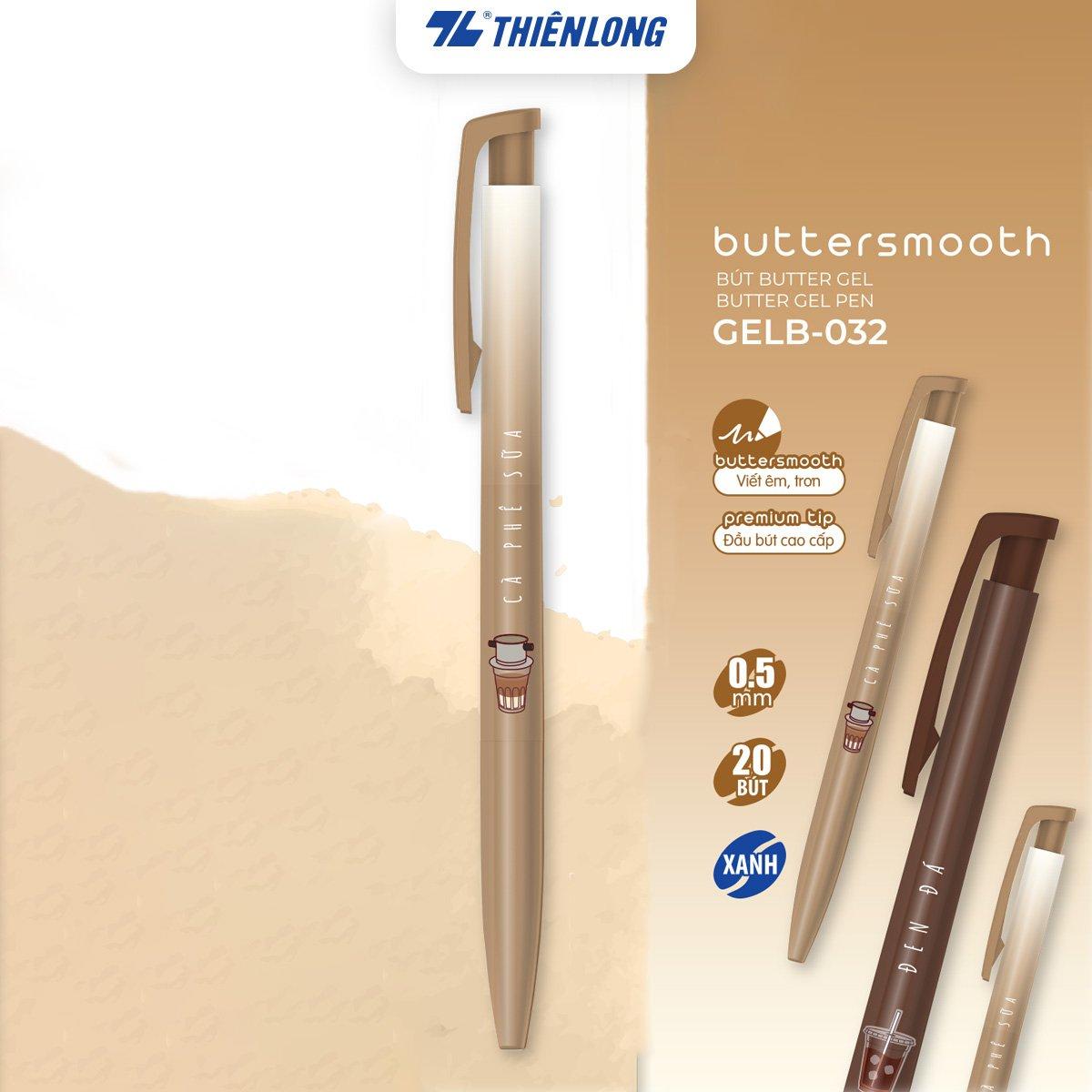 ✨Bút gel B - Buttersmooth Gel Thiên Long GELB-032 - Premium Tip viết êm, trơn - Mực Xanh - Thân ngẫu nhiên