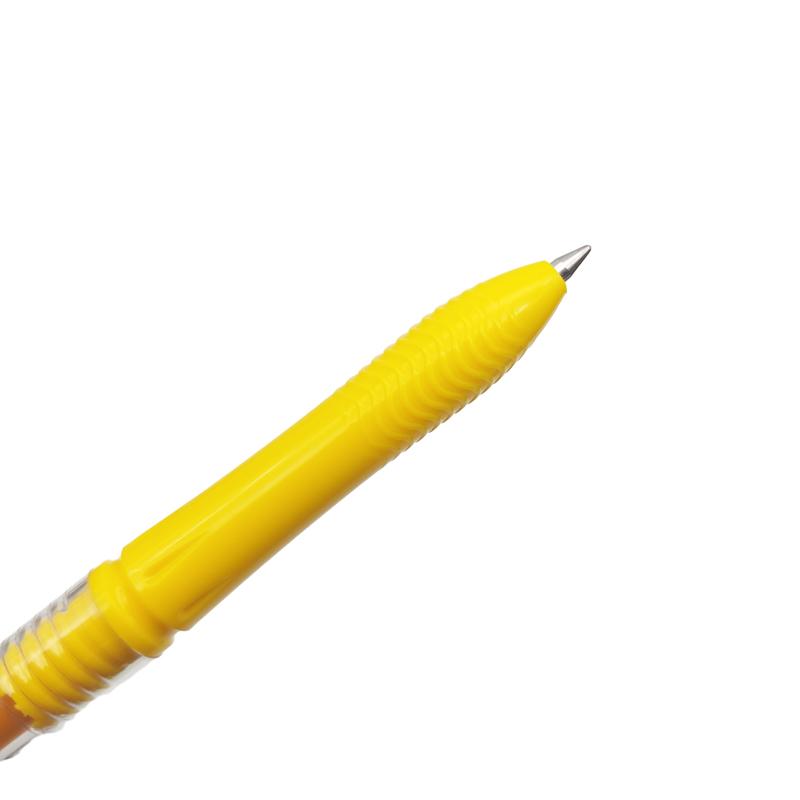 Bút có dạng bấm giúp bảo quản ngòi được tốt hơn. có đường rãnh gần tay cầm giúp cầm bút chắc tay, tránh trơn tuột.