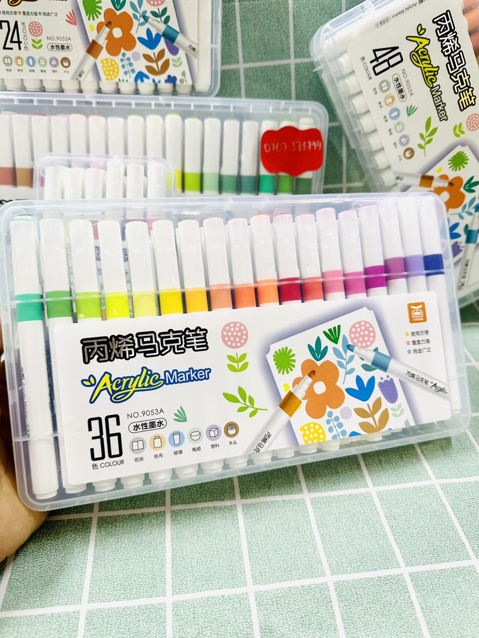 Mua tại TiktokBút Lông Màu Acrylic Marker 12/24/36/48/60 Màu Hàng Cao Cấp An Toàn Màu Sắc Tươi Sáng Vẽ Được Trên Nhiều Chất Liệu: